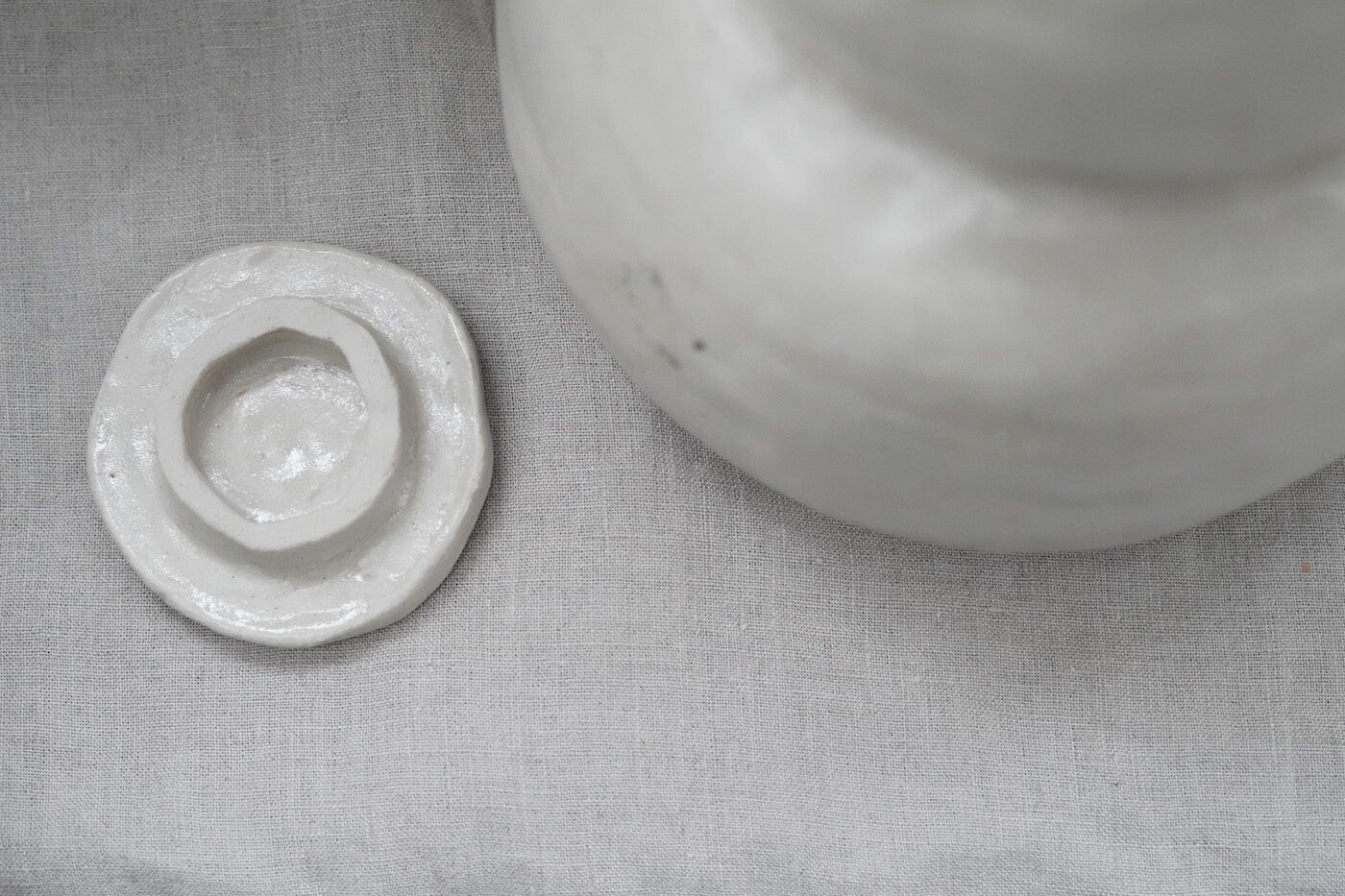 Handopgebouwde vaas waarbij de buitenkant gladgestreken.