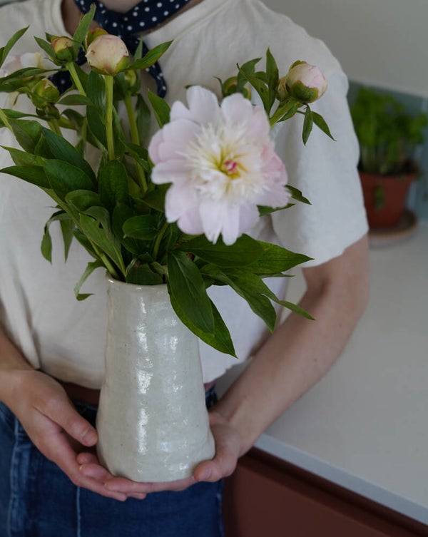 De vaas is op 1250 graden gebakken en daarmee waterdicht en geschikt voor de vaatwasser, binnen en buiten.