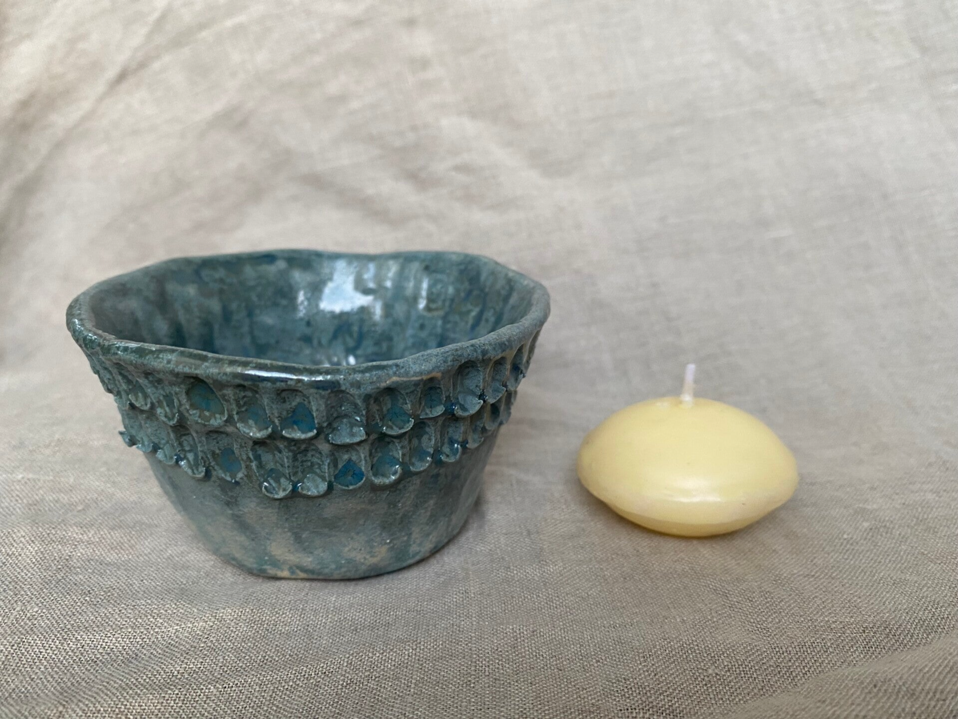 Schotels bruin met blauwe vlekken ⌀ 11 cm (3 euro per stuk):